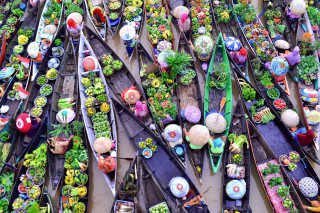 Muara Kuin is a floating market that takes place on traditional boats on the crossing of the Barito and Kuin rivers, in Banjarmasin, Indonesia. The market starts every day at dawn, after the locals have said their prayers, and usually ends around 9am. Sellers mainly offer fresh vegetables, fruits and fish to buyers and intensive negotiations are usually carried out.