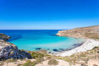 You’ll be sharing Rabbit Beach in Sicily with many tourists, but that doesn’t make it any less beautiful. The water is blue, the sky is blue, and all the umbrellas are blue. Good luck finding your beach bed, as you can probably guess its color, but once you’ve found a good spot, you can start relaxing.