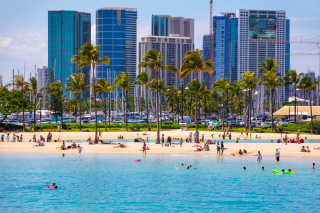 Honolulu’s skyline may not include as many tall buildings as the other cities on this blog, but it’s no less beautiful for that. What makes the Honolulu skyline so fun to look at is the abundance of palm trees on the wonderful beach in front of the skyline. Therefore, this is the most relaxed horizon of all.